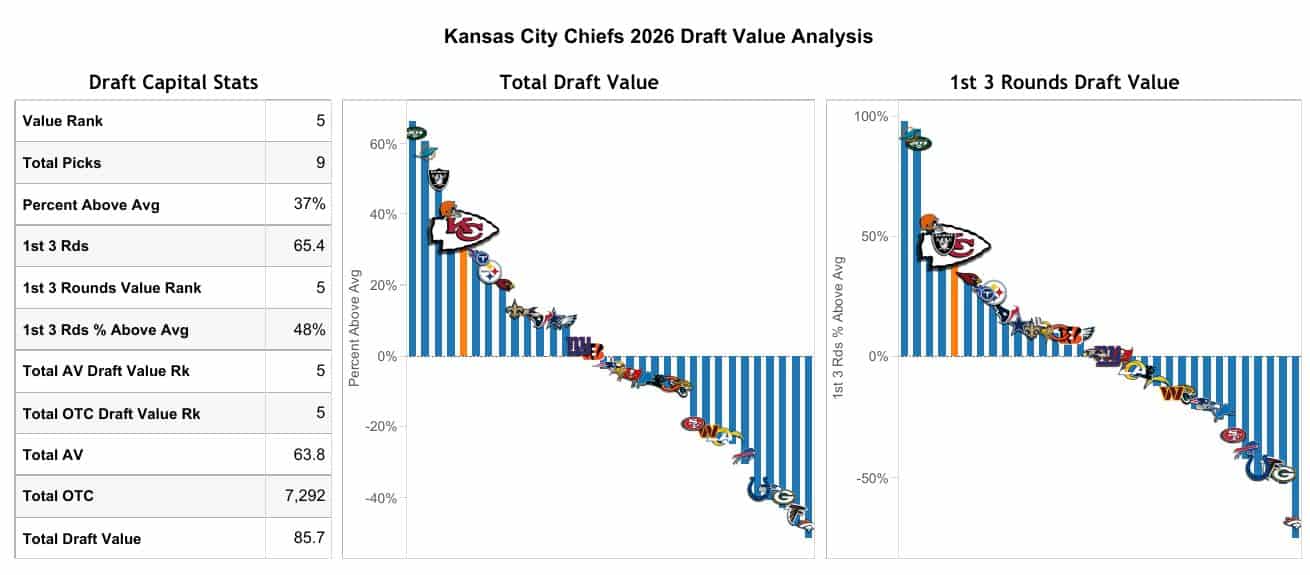 The Chiefs have the 5th-most draft capital according to our Sharp Football Draft Value.