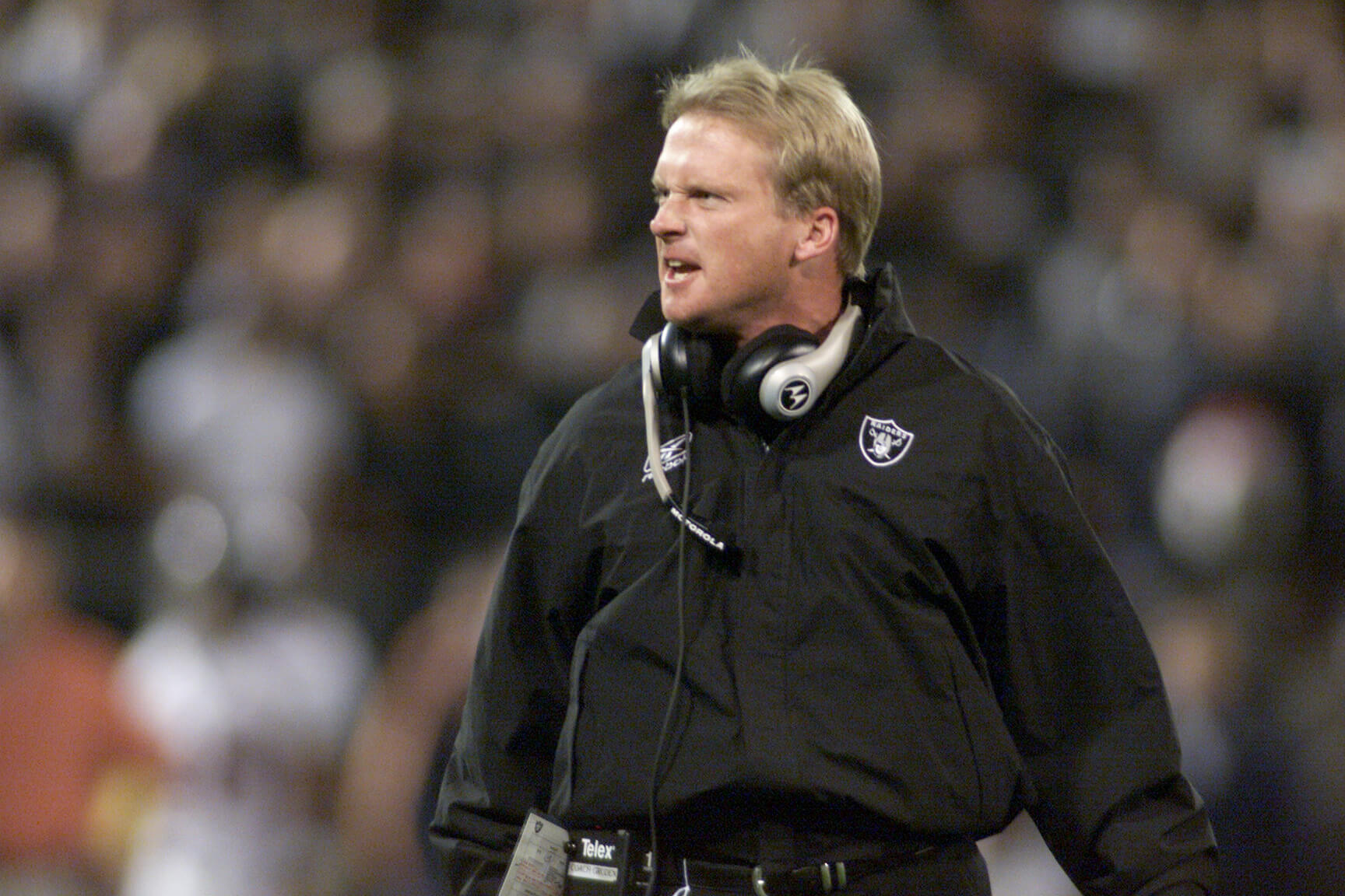 Gruden developed into a star in his first stint with the Raiders from 1998 to 2001. (Jed Jacobsohn / Allsport via Getty Images)