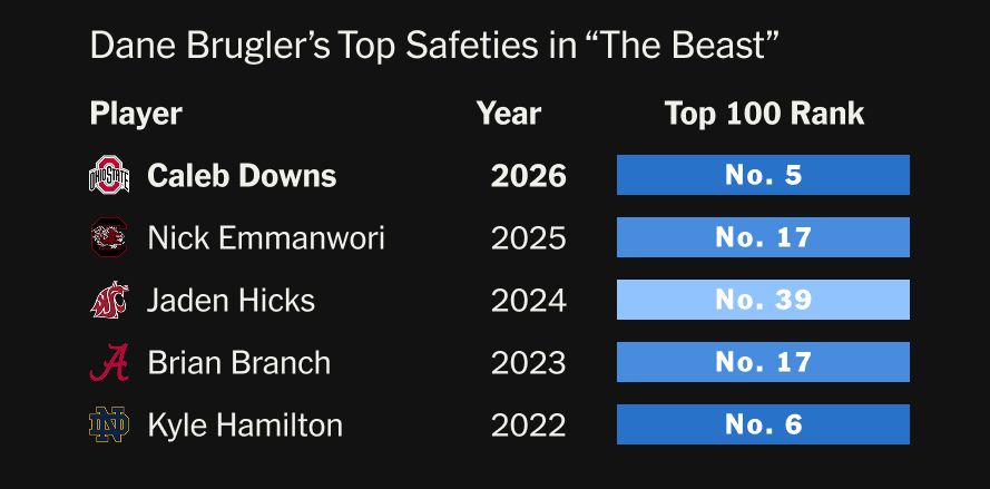 The odds were against me. As for Downs, younger brother of Josh, he became an elite NFL prospect and the No. 5 overall player in The Beast. He’s Dane’s highest-ranking safety of the past five years.