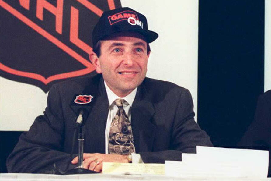 Gary Bettman dons a ballcap. (Jon Levy / AFP via Getty Images)