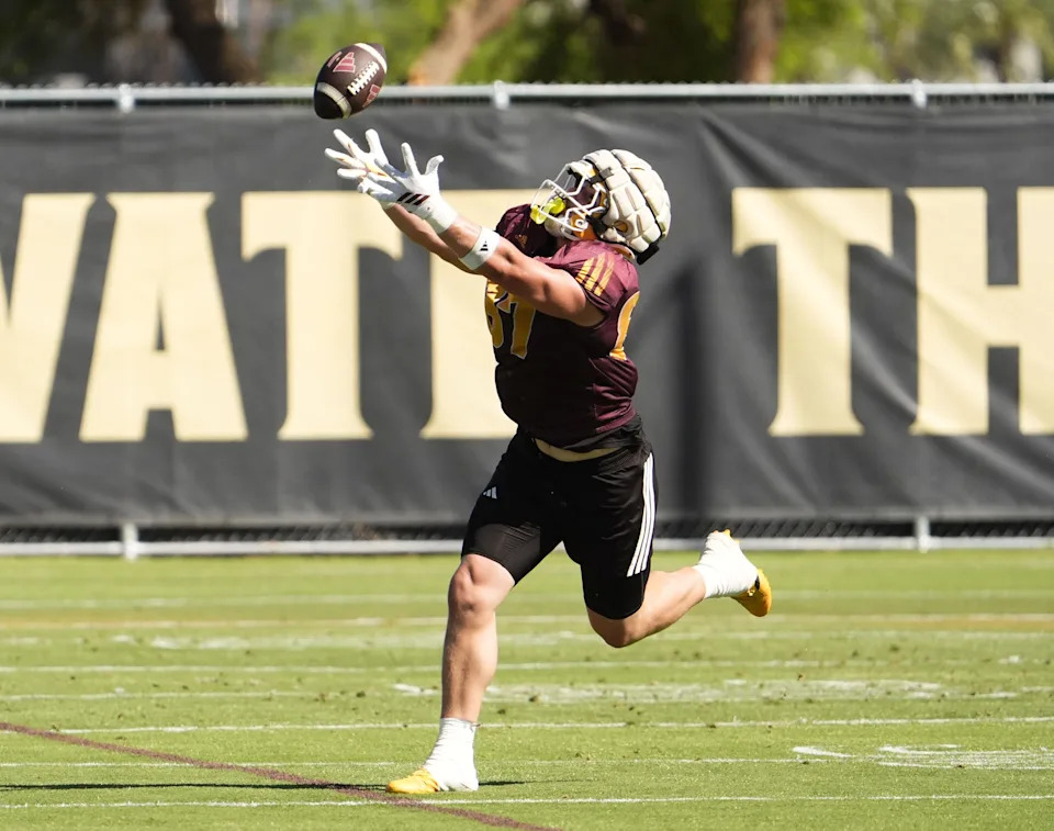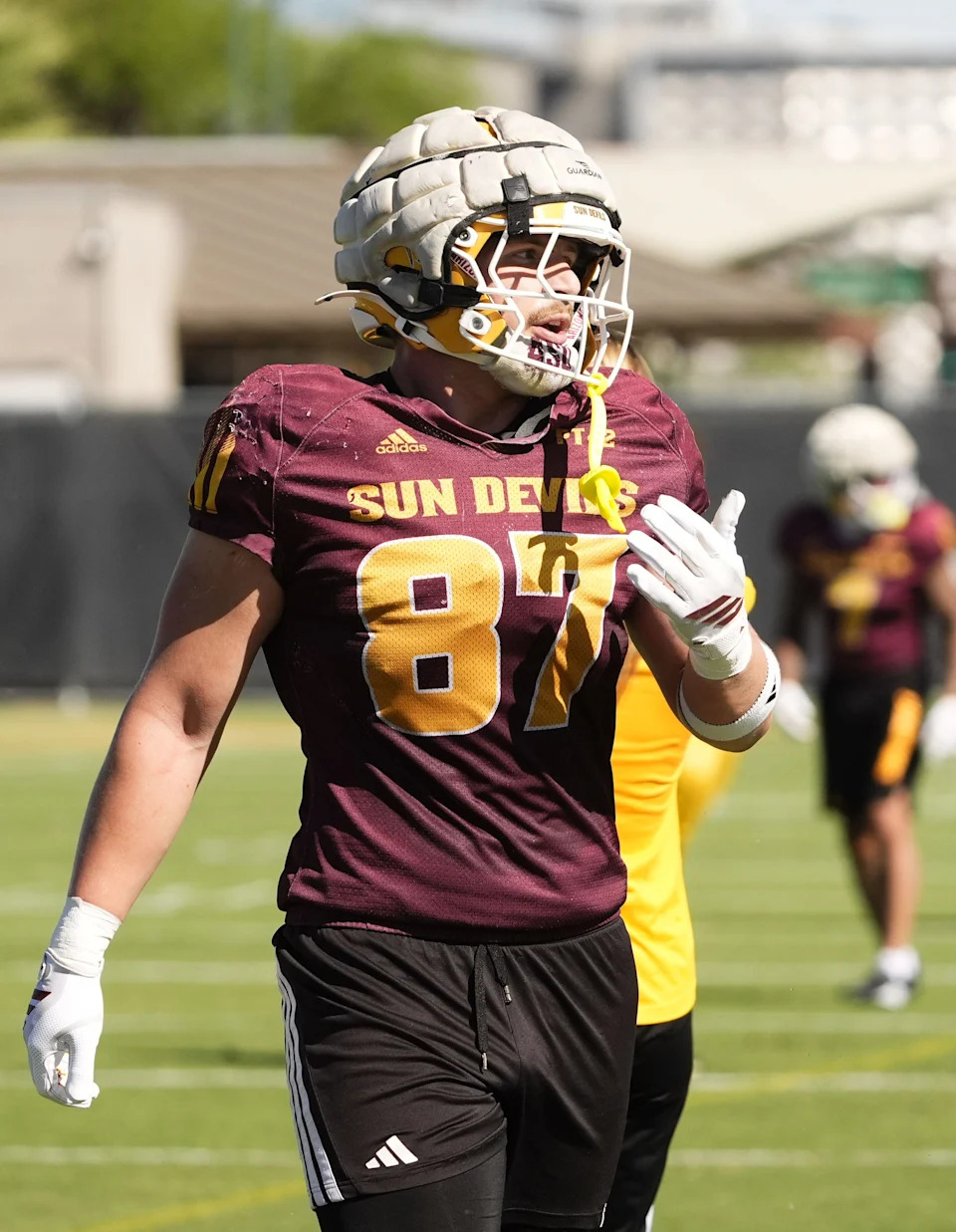Arizona State tight end James Giggey (87) during practice on March 24, 2026, at Kajikawa Practice Fields in Tempe.