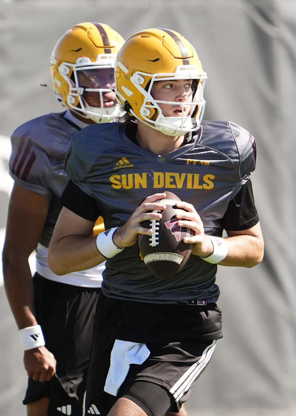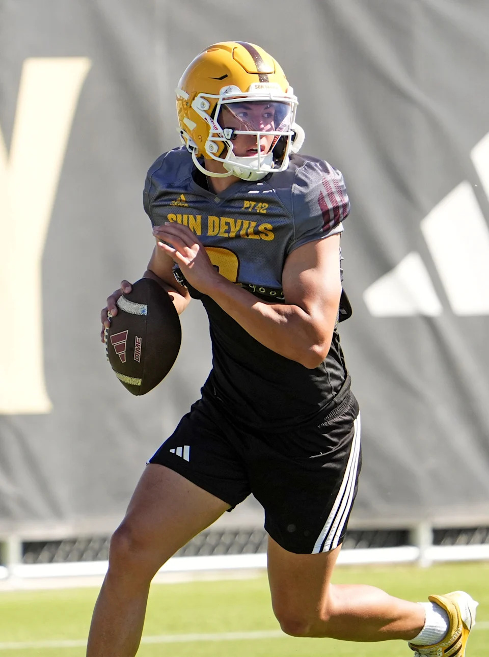 Arizona State quarterback Jake Fette (2) during practice on March 24, 2026, at Kajikawa Practice Fields in Tempe.