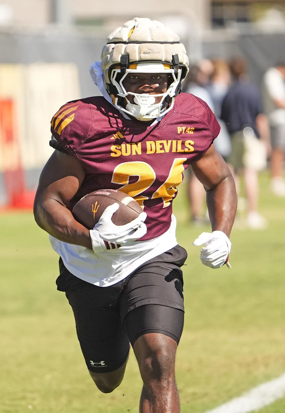 Arizona State running back David Avit (24) during practice on March 24, 2026, at Kajikawa Practice Fields in Tempe.