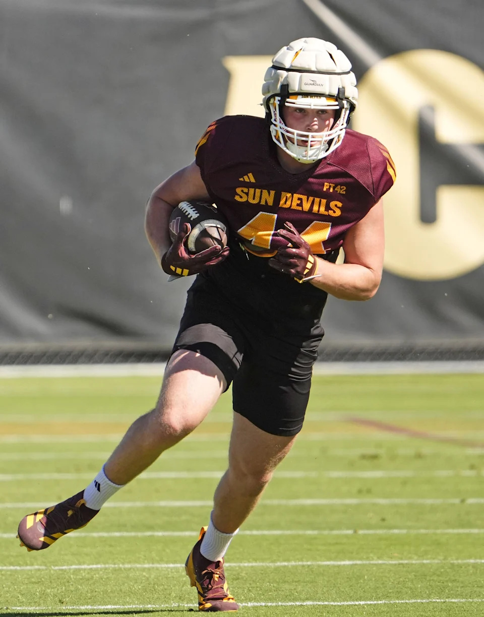 Arizona State tight end Kristian Ingman (44) during practice on March 24, 2026, at Kajikawa Practice Fields in Tempe.