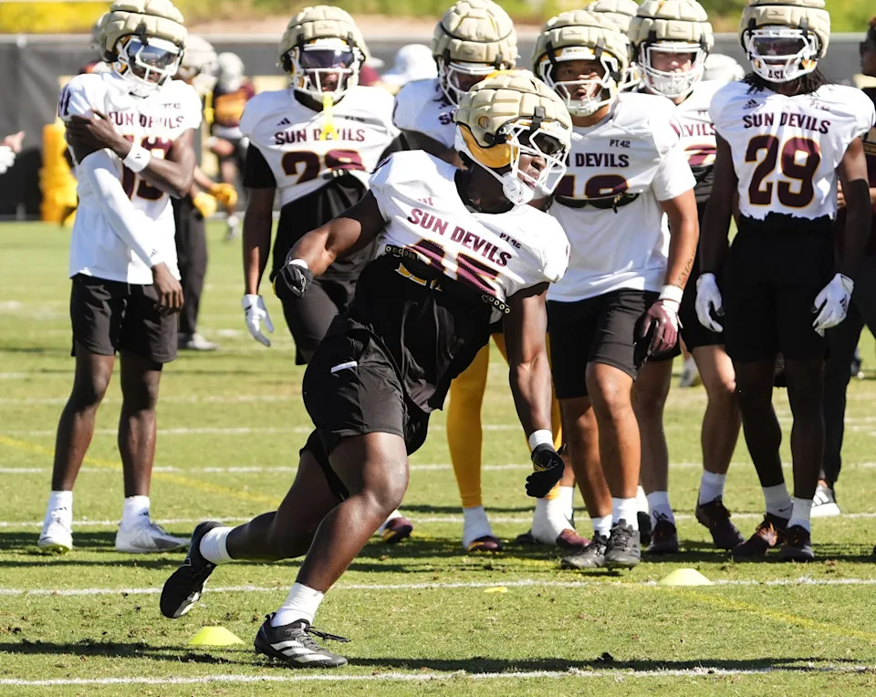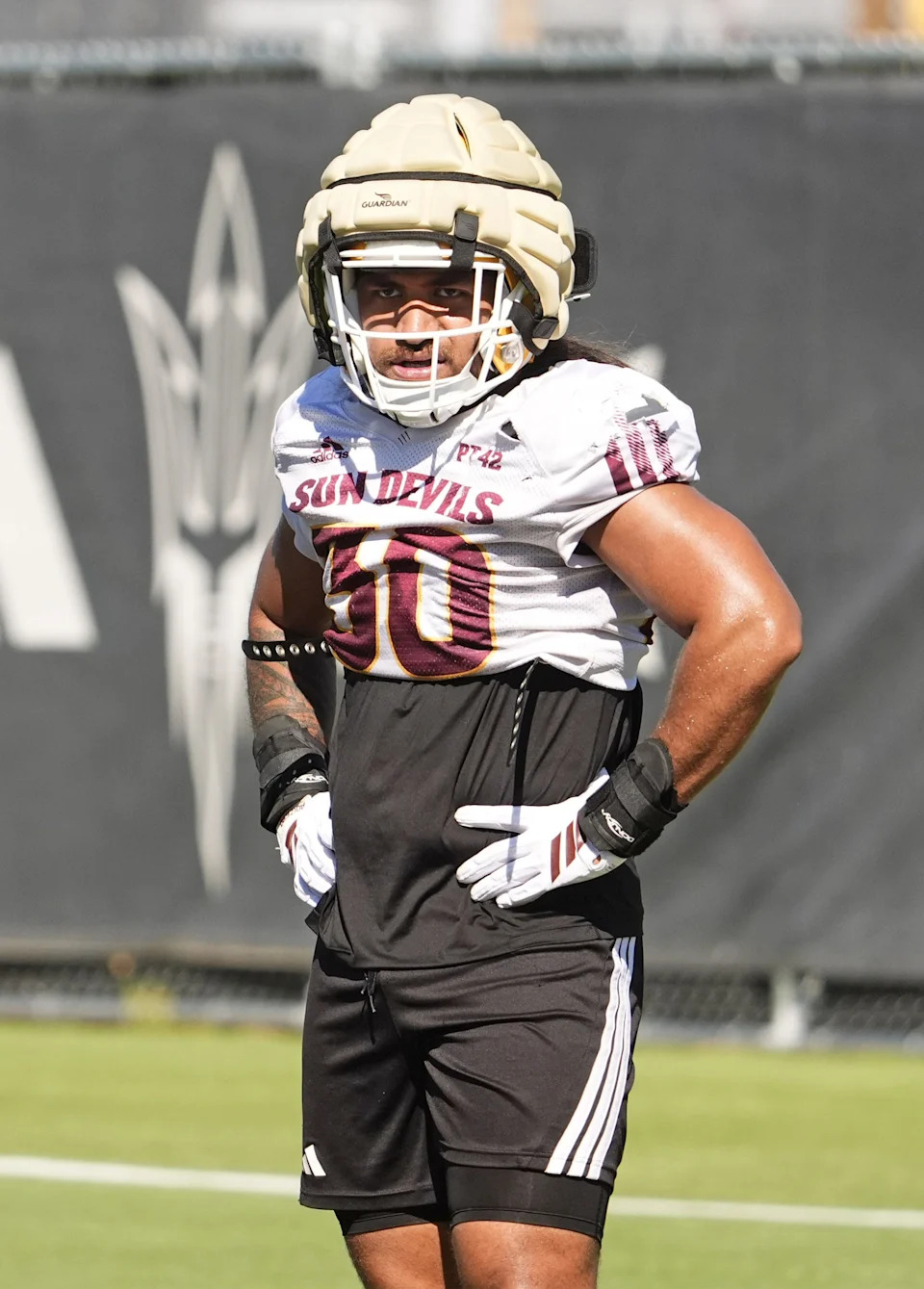 Arizona State linebacker Zyrus Fiaseu (30) during practice on March 24, 2026, at Kajikawa Practice Fields in Tempe.