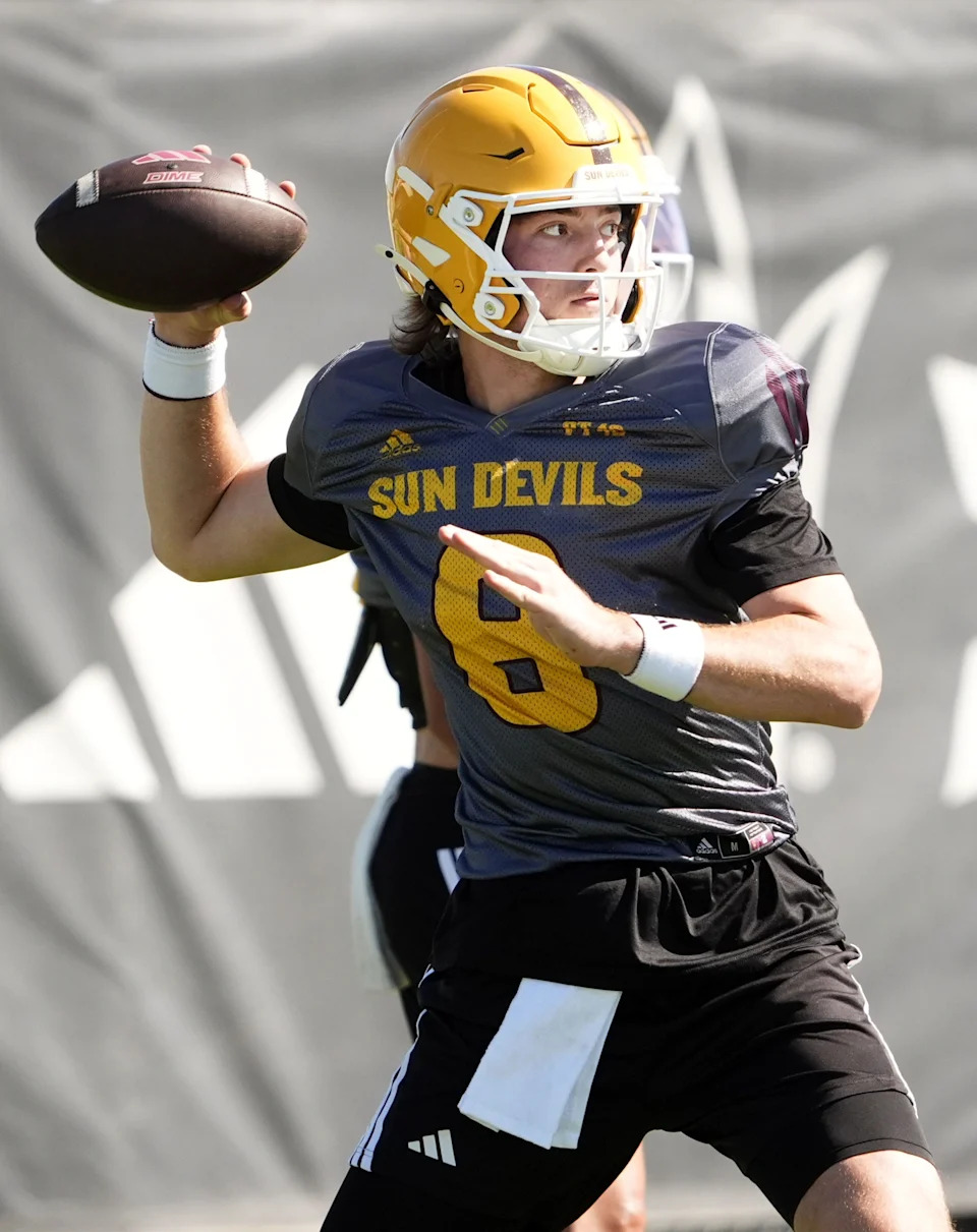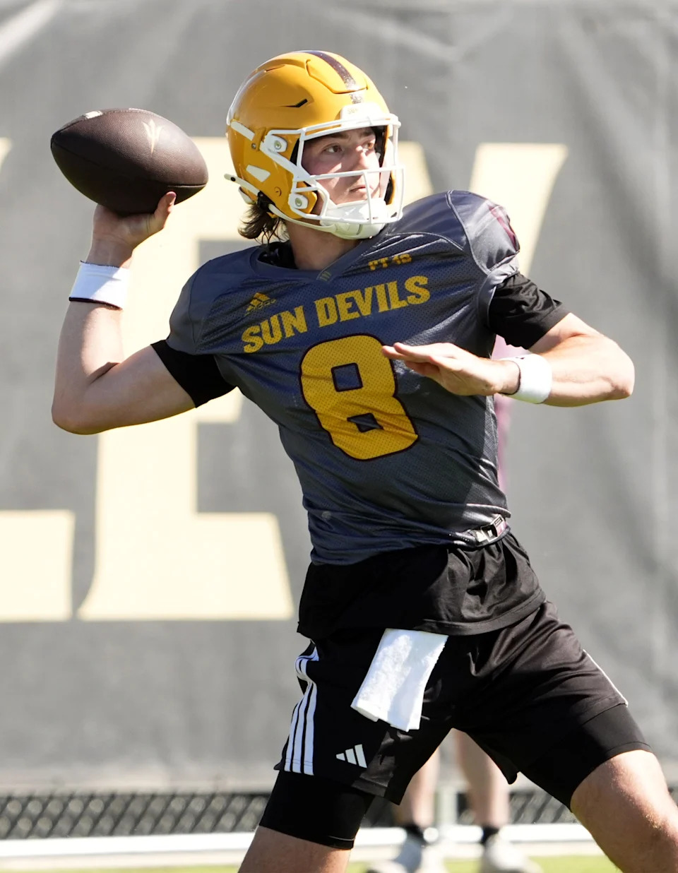 Arizona State quarterback Cutter Boley (8) during practice on March 24, 2026, at Kajikawa Practice Fields in Tempe.