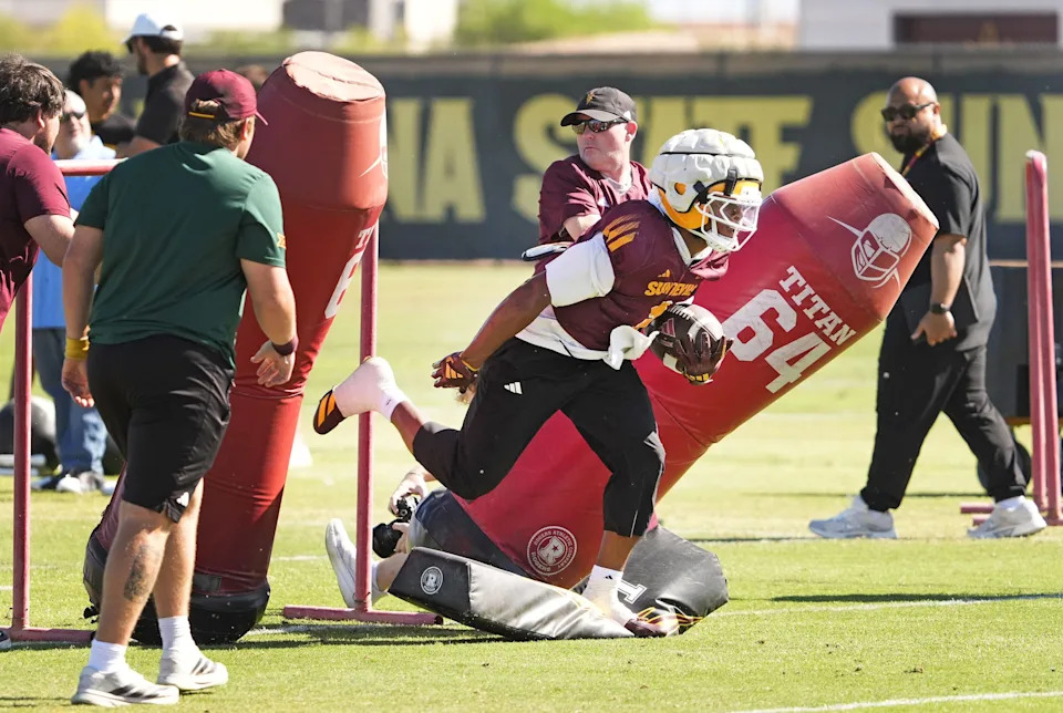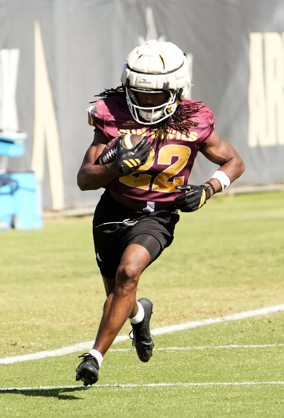Arizona State running back Jason Brown Jr. (22) during practice on March 24, 2026, at Kajikawa Practice Fields in Tempe.