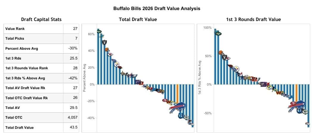 The Bills have the 27th-most draft capital according to our Sharp Football Draft Value.