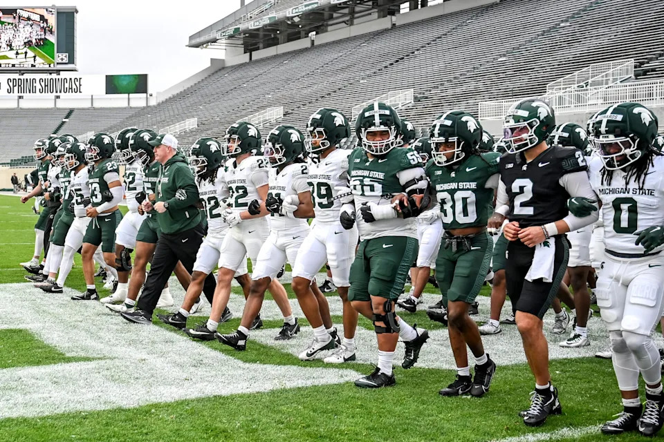 Michigan State takes the field during the football Spring Showcase on Saturday, April 18, 2026, at Spartan Stadium in East Lansing.