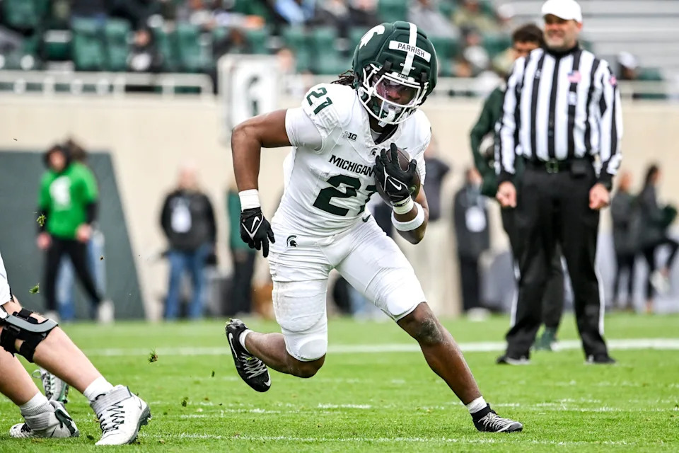 Michigan State’s Marvis Parrish runs the ball during the football Spring Showcase on Saturday, April 18, 2026, at Spartan Stadium in East Lansing.