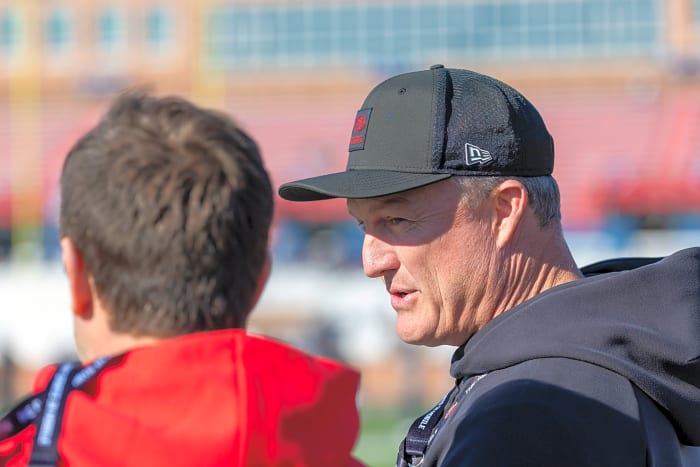 Jan 28, 2026; Mobile, AL, USA; San Francisco 49ers general manager John Lynch visits the field during National Senior Bowl practice at Hancock Whitney Stadium. Mandatory Credit: Vasha Hunt-Imagn Images