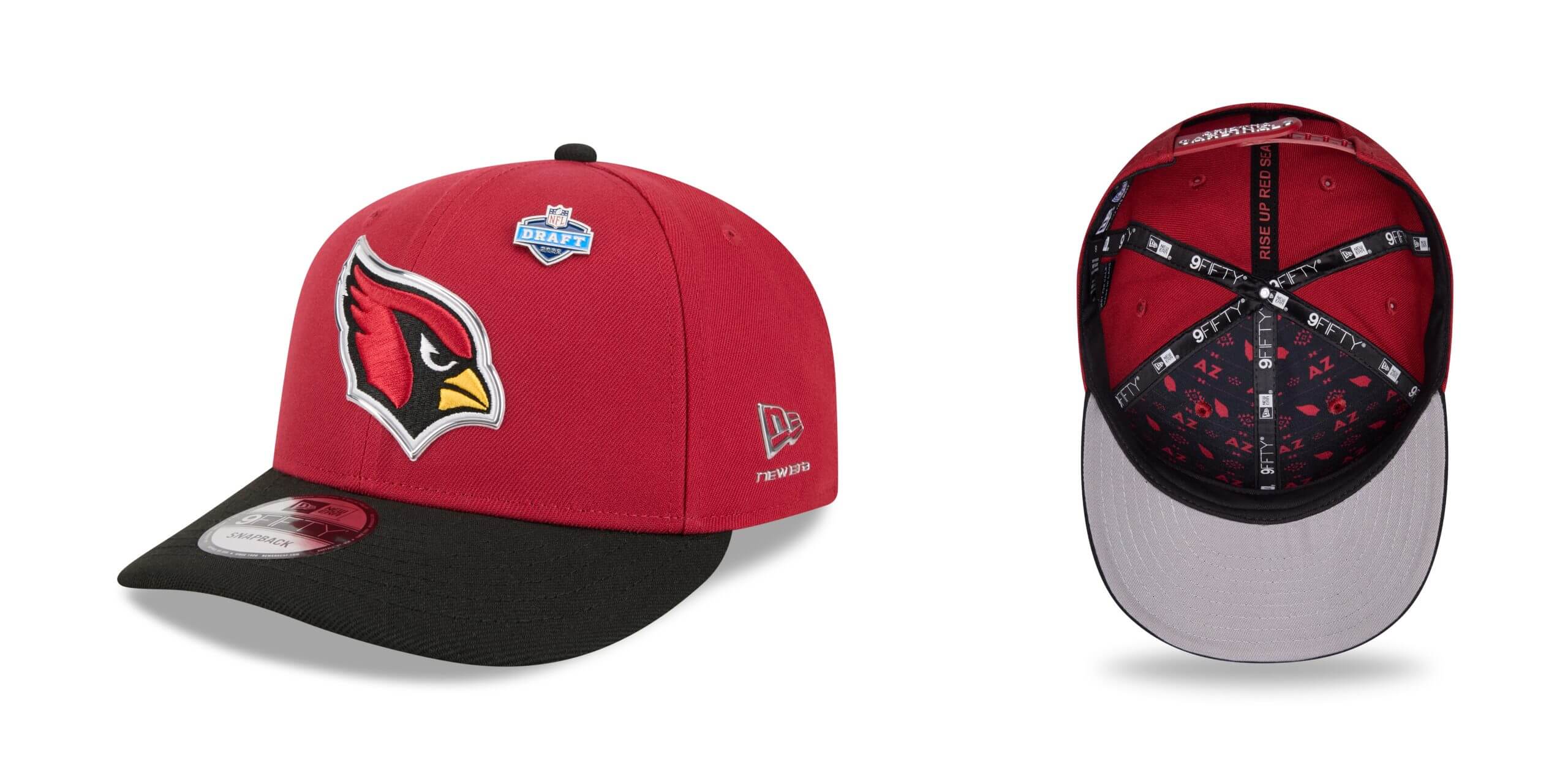 The Cardinals draft hat features a design with the silhouette of their helmet logo, the “AZ” abbreviation for Arizona and a “Southwest-inspired pattern.” Or maybe it is a Rorschach test that reveals whether the wearer still sees Kyler Murray in a Cardinals uniform.