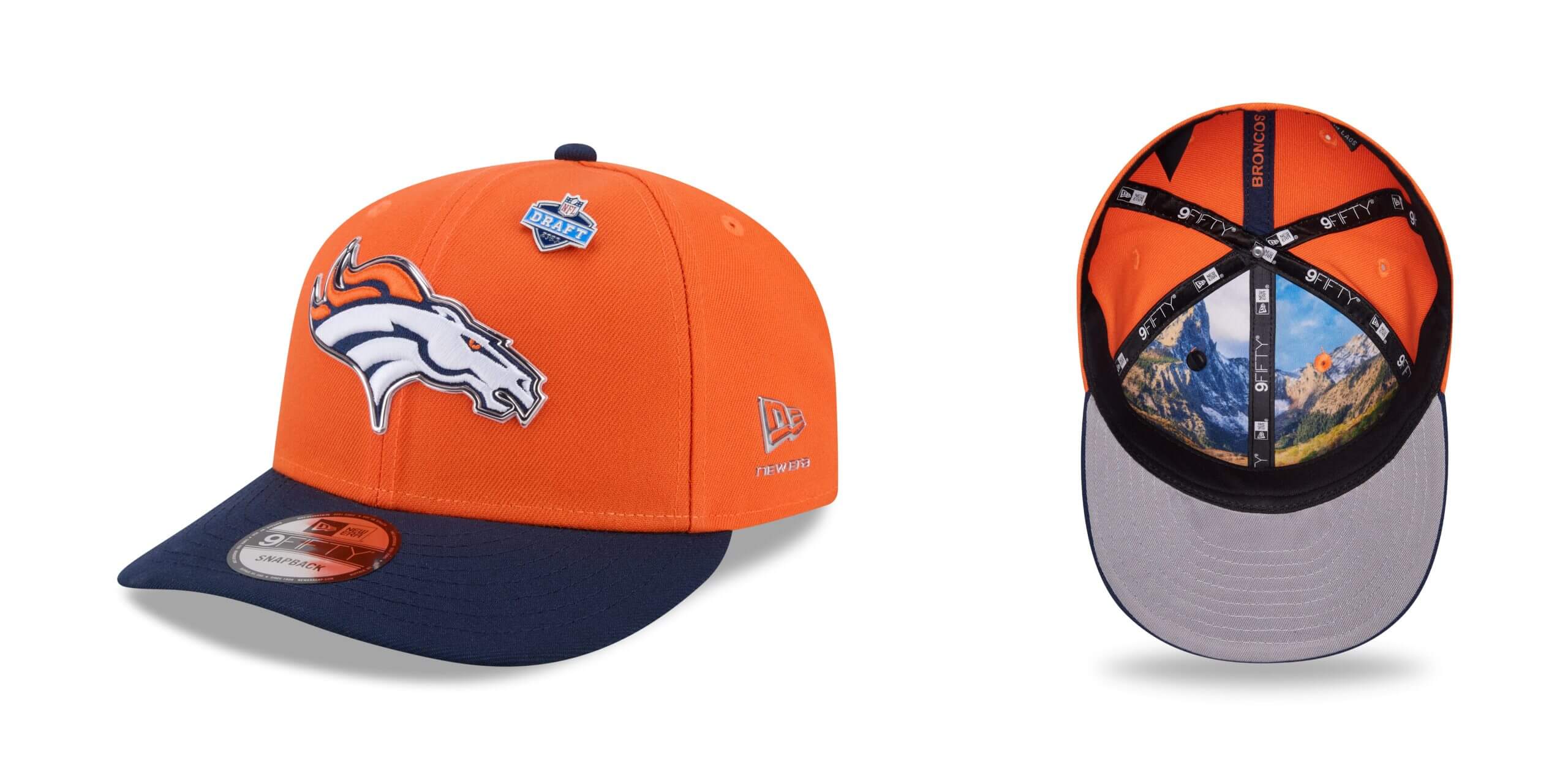 The beautiful Rocky Mountains grace the inside of the Broncos hat to welcome draftees to the Mile High City. It’s like having a Bob Ross painting pressed against your head.