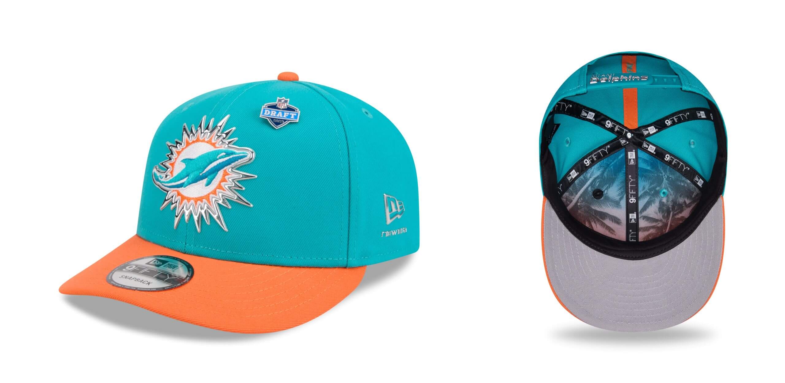 When you think of the Dolphins you automatically think of Don Shula, Dan Marino throwing long, going undefeated and palm trees. But only the palm trees greet you on the inside of the team’s draft hat. As fun as dolphins are to look at, it’s amazing they didn’t make the cut.