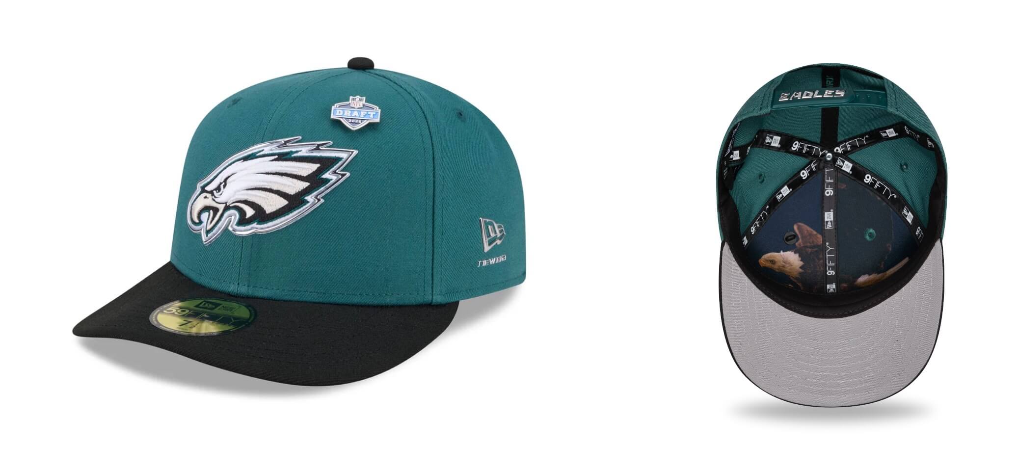 All draftees will be handed a New Era 9FIFTY design with a snapback fit that features metallic detailing and the team name on the closure, but the hats will also be available in 59FIFTY (fitted) and various other styles.