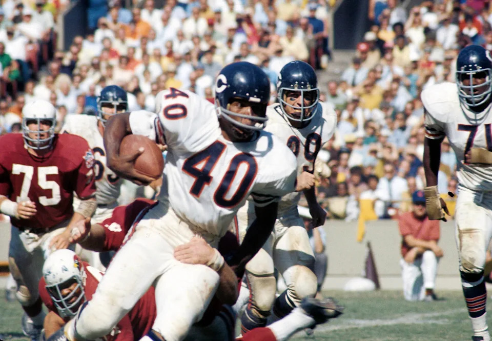 Sep 28, 1969; St. Louis, MO, USA; FILE PHOTO; Chicago Bears running back Gayle Sayers (40) in action against the St. Louis Cardinals at Busch Stadium. The Cardinals defeated the Bears 20-17. Mandatory Credit: Herb Weitman-USA TODAY Sports