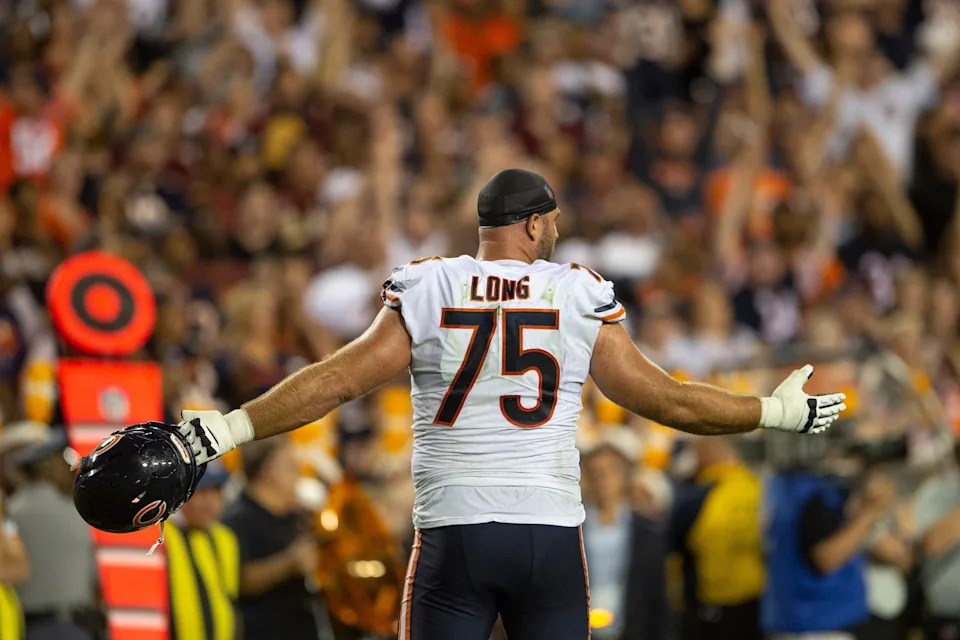 Sep 23, 2019; Landover, MD, USA; Chicago Bears guard Kyle Long (75) stands on the field during the first half against the Washington Redskins at FedExField. Mandatory Credit: Tommy Gilligan-USA TODAY Sports