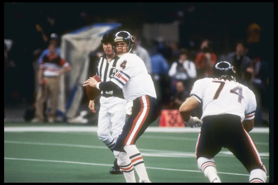 Jan 26, 1986; New Orleans, LA, USA; FILE PHOTO; Chicago Bears quarterback Jim McMahon (9) throws the ball against the New England Patriots during Super Bowl XX at the Superdome. The Bears defeated the Patriots 46-10. Mandatory Credit: Manny Rubio-USA TODAY Sports