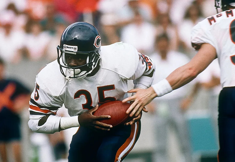 Unknown date & location, USA; FILE PHOTO; Chicago Bears running back Walter Payton (34) carries the ball during the 1987 season. Mandatory Credit: Manny Rubio-USA TODAY Sports