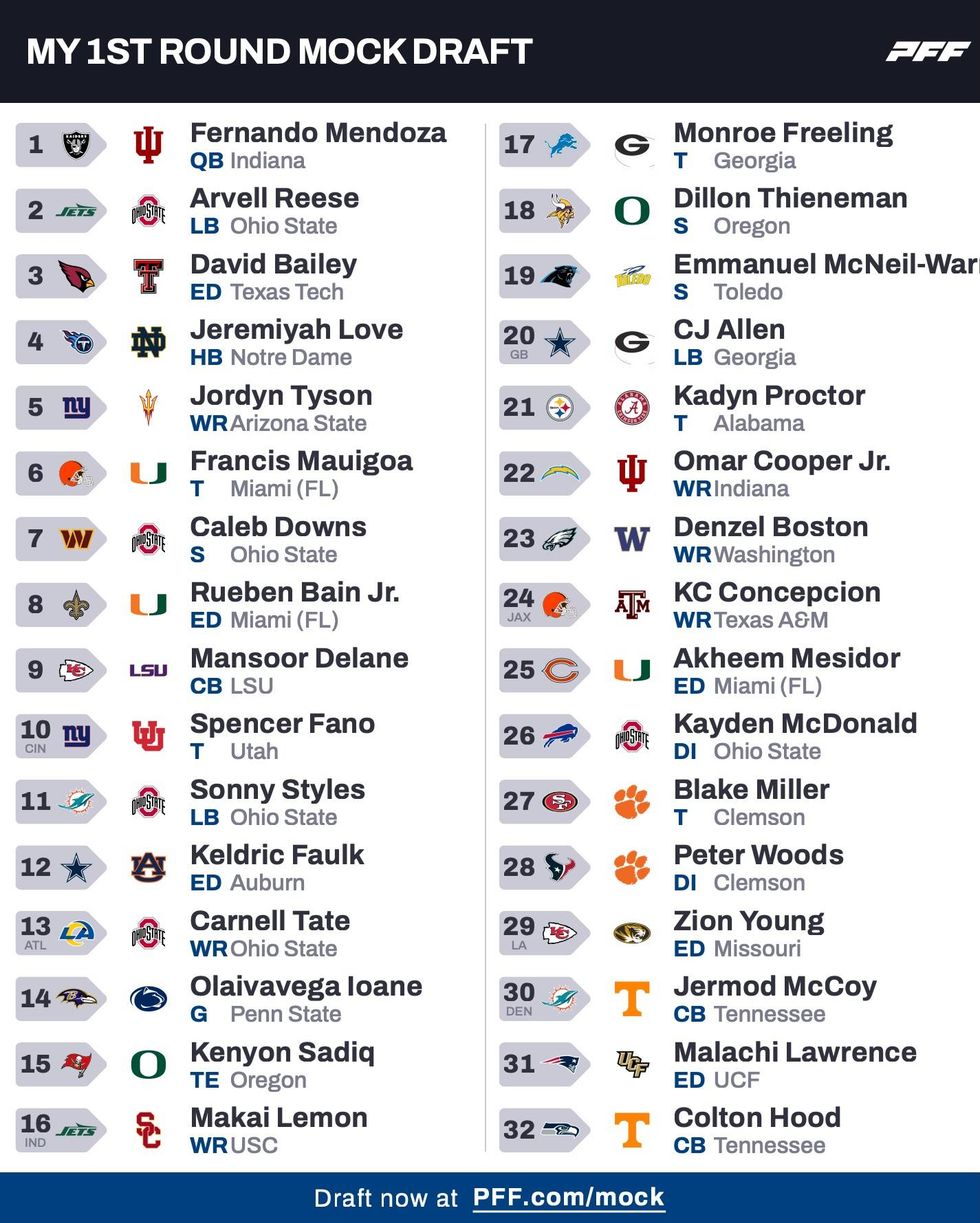 Orchard Park, NY (WGR550) – Here is my one and only mock draft for 2026, followed by an explanation of the Bills pick (no trades allowed):