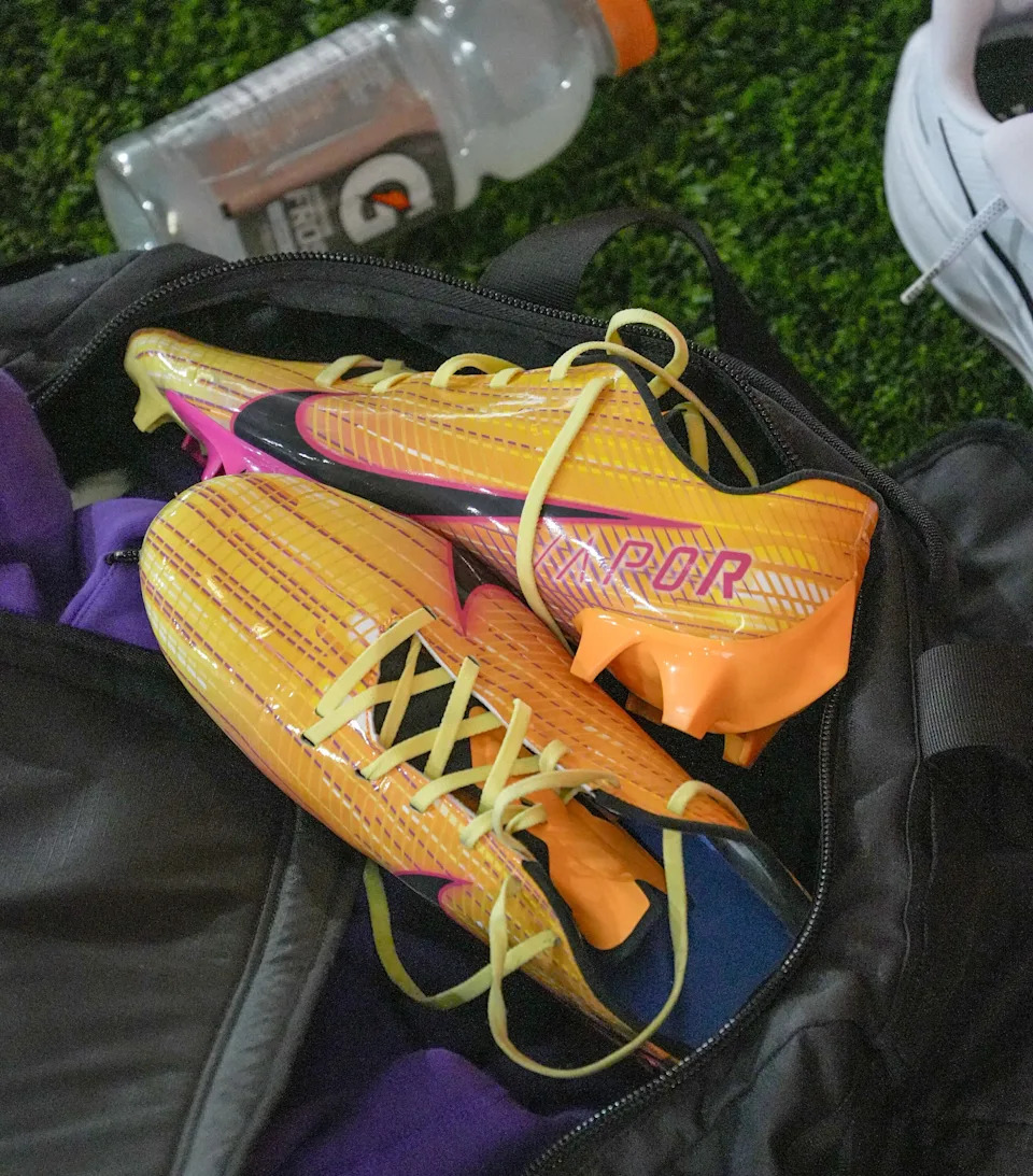 Former Clemson quarterback Cade Klubnick shoes during 2026 Clemson Pro Day in the Poe Indoor Facility at Clemson University in Clemson Thursday, March 12, 2026.