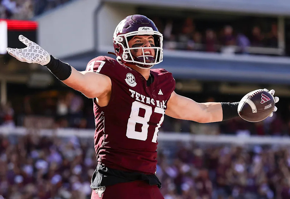 Career stats: Played four years at Nebraska, appearing in 39 games (17 starts), catching 19 passes for 219 yards and one score. Transferred to Texas A&M in 2026, playing in 13 games, catching 19 passes for 198 yards and three touchdowns.