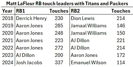 Well, Matt LaFleur doesn’t exactly have the cleanest history of always featuring one clear lead back. We’re talking about a man who once split touches between Derrick Henry and Dion Lewis for crying out loud! (With all due respect to Dion Lewis).