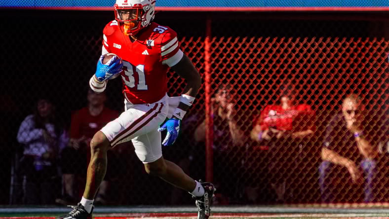 Oct 21, 2023; Lincoln, Nebraska, USA; Nebraska Cornhuskers defensive back Tommi Hill (31) returns a kickoff during the second quarter against the Northwestern Wildcats at Memorial Stadium. Mandatory Credit: Dylan Widger-USA TODAY Sports