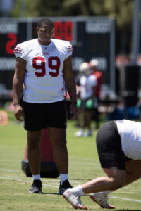 Because of this, San Francisco is hoping to see not only Collins, but also fellow rookie CJ West and last year’s undrafted rookie Evan Anderson, earn significant roles on the line, as well. Anderson, signing with the team out of FAU last year, started one game in 12 appearances last season and graded out most favorably of the interior defenders on the 49ers, per PFF, ranking 49th out of 118 players graded at the position. West was extremely disruptive in four years as a starter in college — three at Kent State before transferring to Indiana. He had nine sacks and 27 tackles for loss in those four seasons. Although a bit undersized, West adds some pass rushing potential thanks to an impressive arsenal of ferocious moves.
