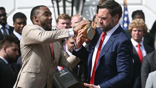 JD Vance fumbles Ohio State title trophy at White House event