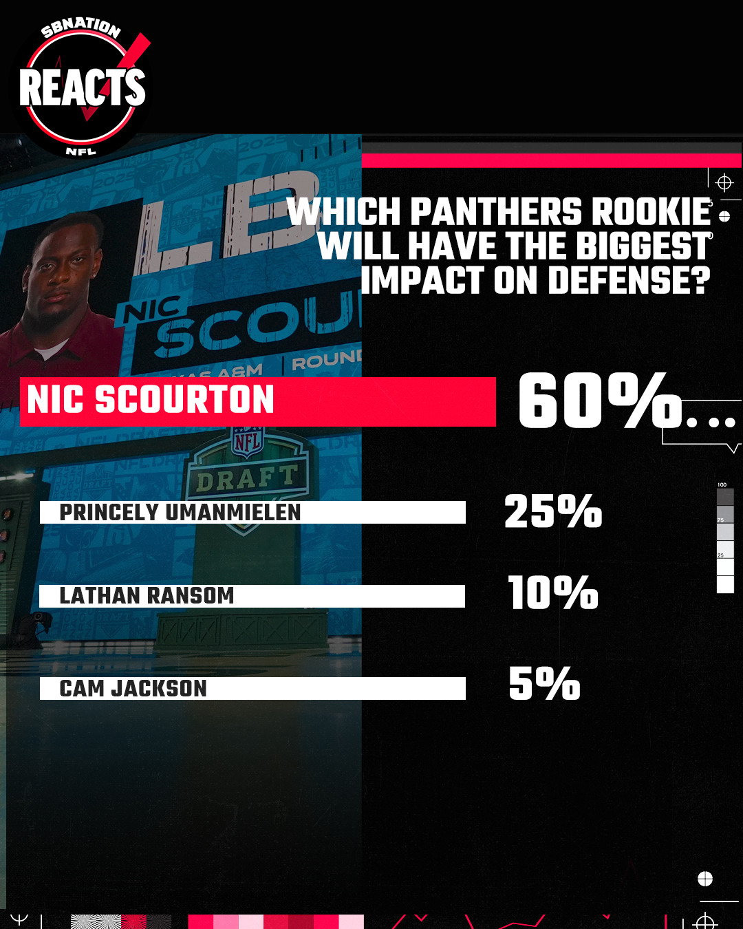 Perhaps unsurprisingly, most Panthers fans think that the Panthers second pick in the 2025 NFL draft will have the biggest impact on the team this season. The vast majority of y’all think it will be between Scourton and Umanmielen, the team’s second and third round picks respectively.