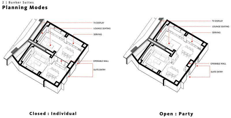 Two new bunker suites flex from one open area to up to four to serve premium fans. Courtesy of Centennial Authority
