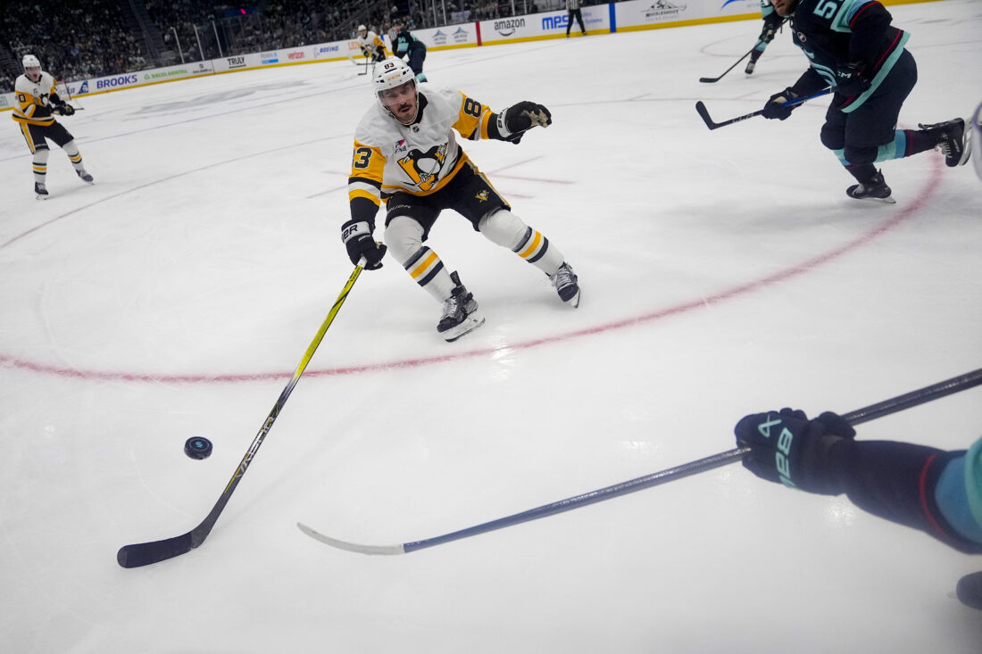 The Penguins will play at San Jose on Monday, while the Kraken will play at Edmonton.