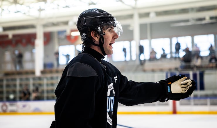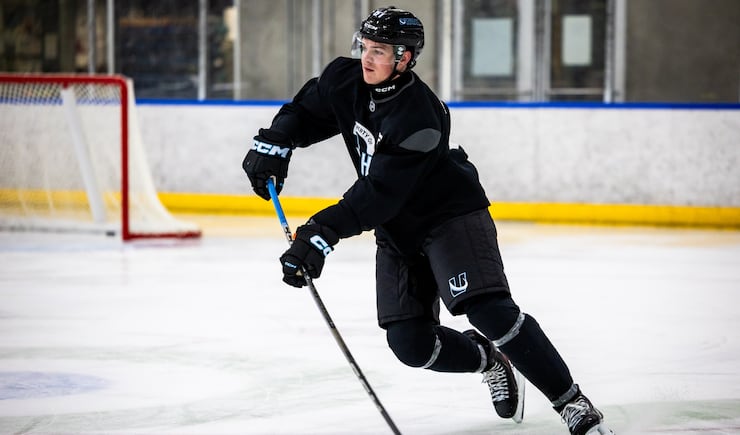 Caleb Desnoyers participates in an on-ice session at the Utah Mammoth prospect development camp at the Park City Ice Arena in Park City on Monday, June 30, 2025. | Tess Crowley, Deseret News