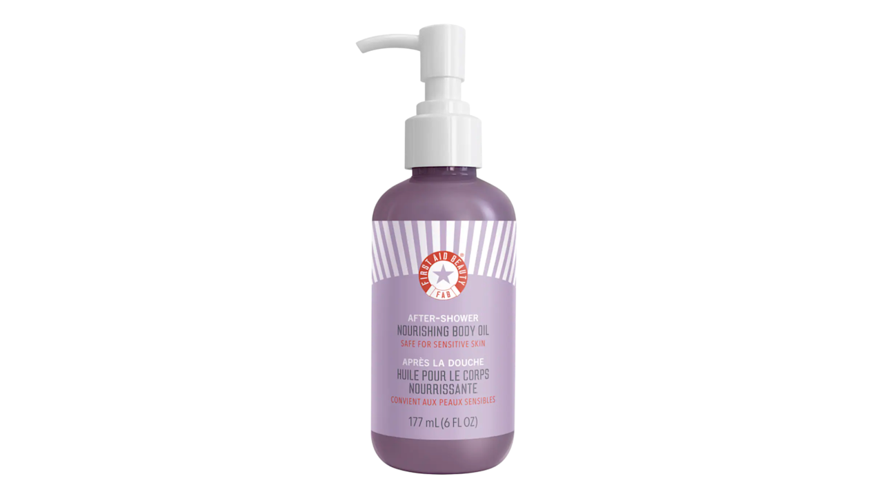 “I use this grapeseed oil whenever I’m super dry. It’s from First Aid Beauty. It’s super hydrating. Anytime I’m a little patchy with dry patches or dry spots, I put that on and it helps tremendously.”