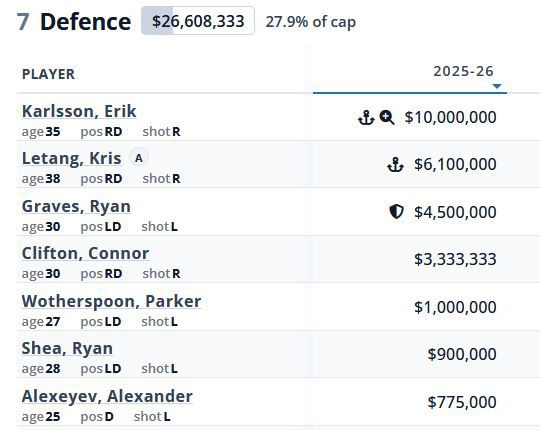 The same can’t be said about this look of blueliners, there’s a lot more to resolve still this summer on the backend when checking the PuckPedia depth chart: