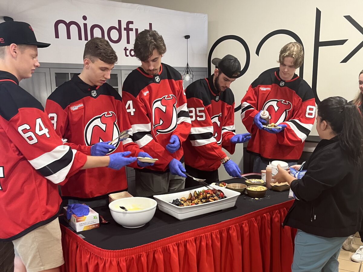 Devils prospects make meals for patients. (Photo: Cooperman Barnabas Medical Center)