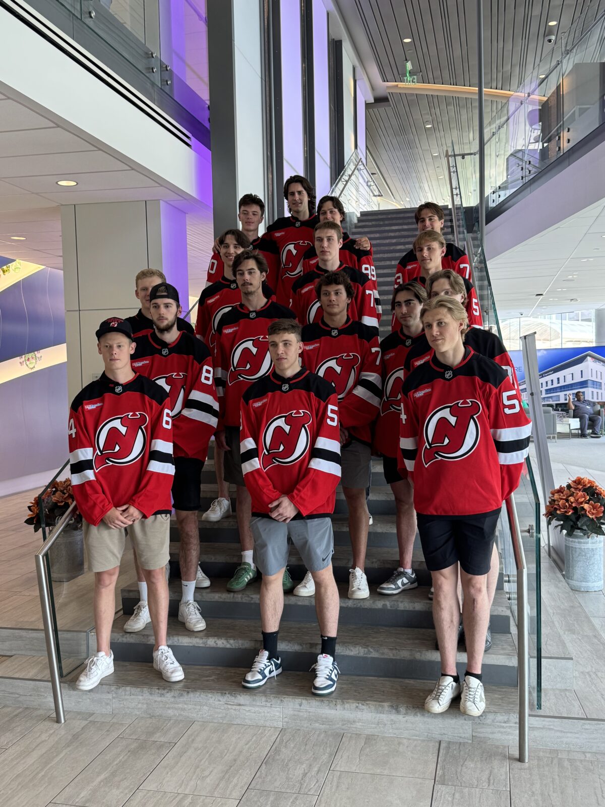 Devils prospects in the lobby of Cooperman Barnabas. (Photo: Daniel Amoia / The Hockey Writers)