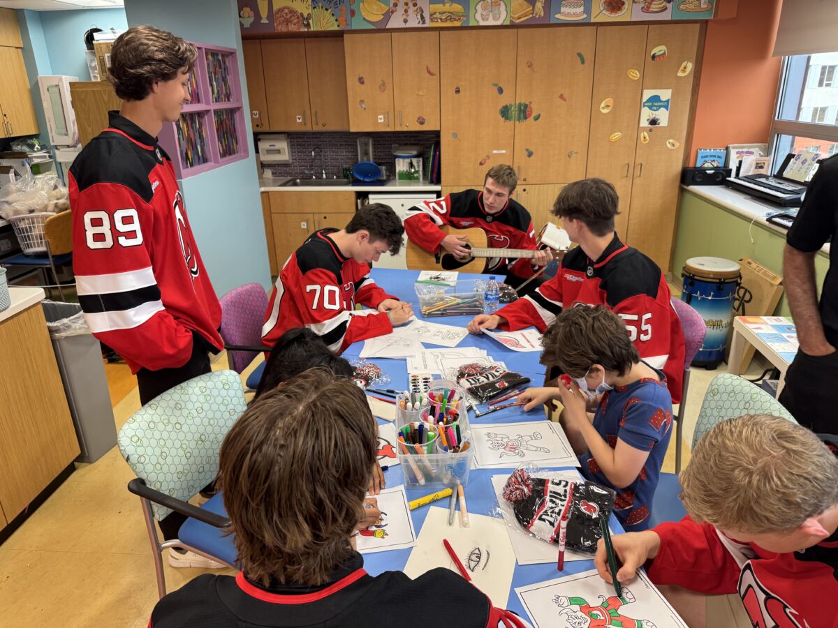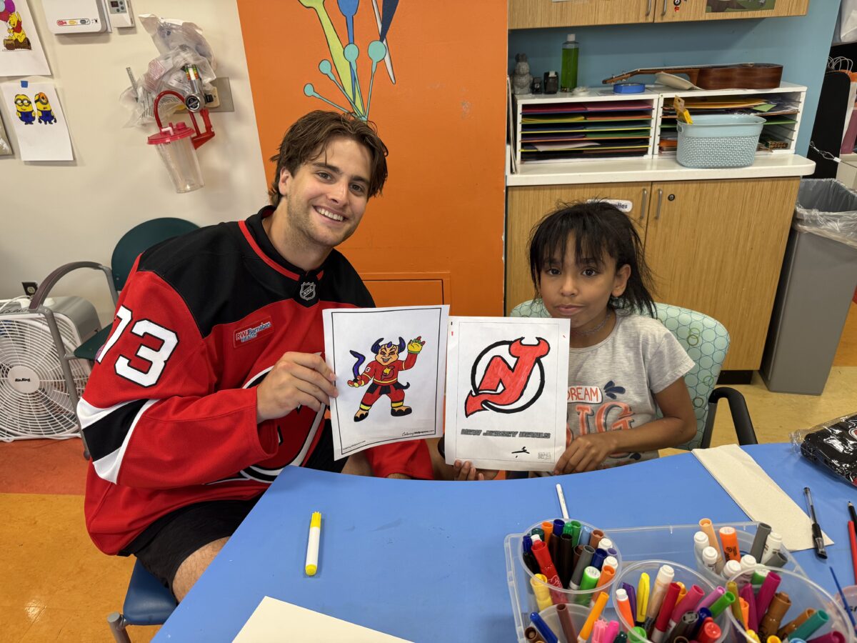 On the first on-ice day of New Jersey Devils Development Camp, the prospects participated in something much bigger than hockey. Following their skate, the skaters split into two groups. The first half traveled to Newark Beth Israel Medical Center in Newark; the others headed to Cooperman Barnabas Medical Center in Livingston.