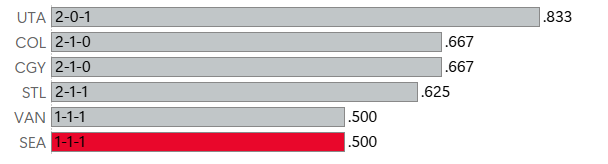 It’s too early, but I already find myself scoreboard watching for teams likely to be in the wild card race. The Kraken have an uphill battle ahead, and they’ll need to claw back some points. Here’s a look at last week’s performance for teams in the wild card hunt.