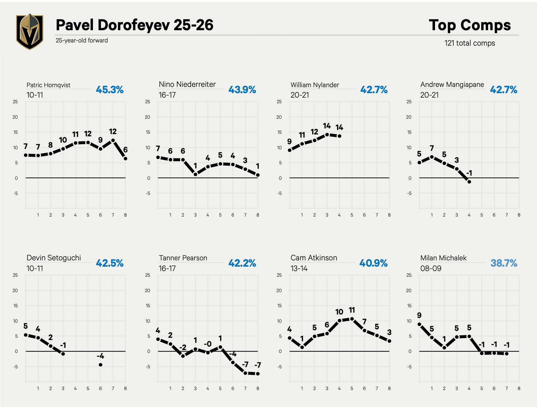 But in a year, he’s going to be in for a raise — especially if he can repeat this year’s production. That question mark is what could give the Golden Knights pause on an early extension, especially when there are bigger contracts to deal with, like Eichel’s. Is Dorofeyev the next Patric Hornqvist, a reliable part of the supporting cast, or is he more like Andrew Mangiapane and a flash in the pan in the goal column?