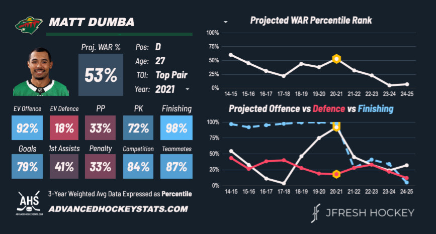 Dumba was once a good player, very good even with a 50-point season in 2017-18 and he was even a major driver of offense as late as 2021.