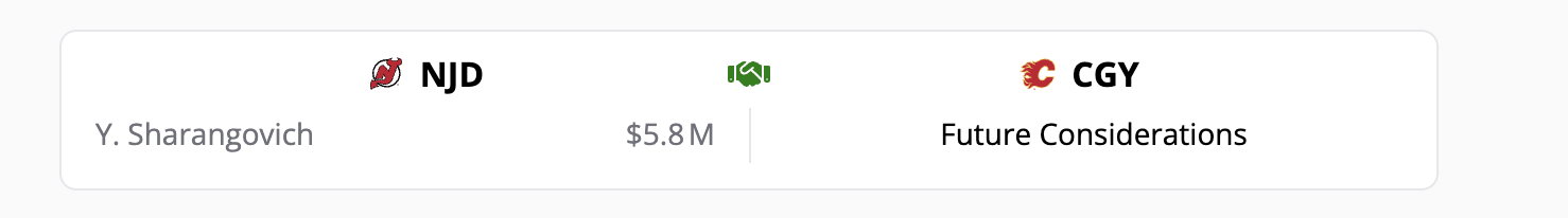 I don’t think the Flames are interested in future considerations—very likely nothing—for any of their players. Calgary would likely need a few draft picks in return.