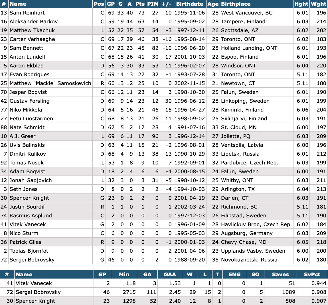 Vitek Vanecek started against his former club last night and allowed six goals on 31 shots. Sergei Bobrovsky seems likely to get the nod from Panthers head coach Paul Maurice tonight.