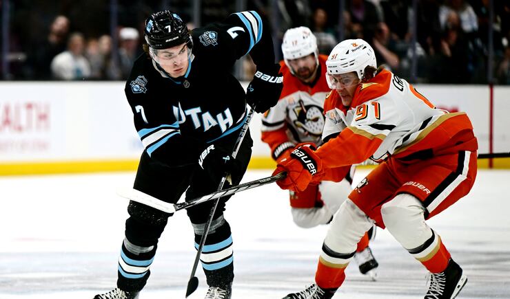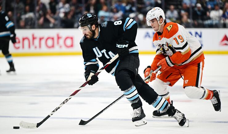 Utah Hockey Club Sean Durzi (50) clears the puck as they play the Anaheim Ducks at the Delta Center in Salt Lake City on Wednesday March 12, 2025. Utah won 3-2. | Scott G Winterton, Deseret News Utah Hockey for casual fans