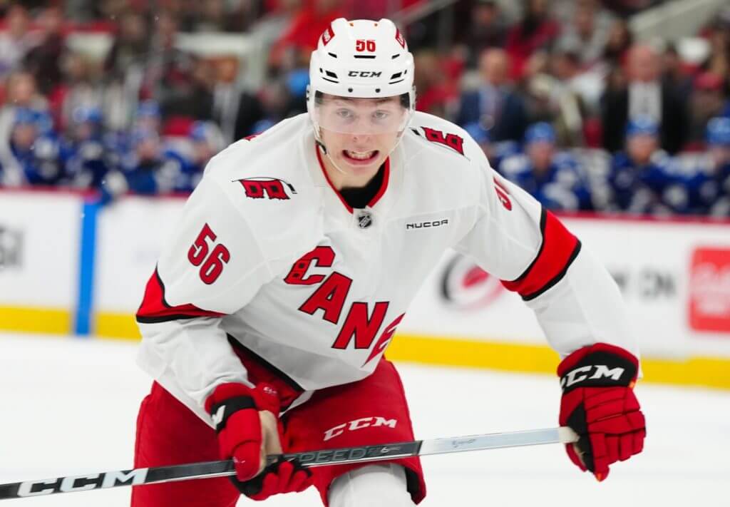The New Jersey Devils’ No. 10 pick Anton Silayev drew the majority of the attention with Torpedo two seasons ago, but scouts were also impressed by what they saw of Artamonov, albeit mostly on tape, and the Hurricanes jumped on him at No. 50 (he was No. 40 on my list). He had a strong draft-age season for a forward in the KHL and clicked against his peers in the MHL playoffs once the pro team was eliminated. He then built on that with an excellent post-draft season as Torpedo’s leading scorer in the regular season with 39 points in 63 games as a teenager who played just 13 minutes per game to good results.
