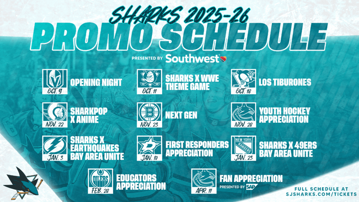 Also, here’s the San Jose Sharks’ promotional schedule next season, more details here: