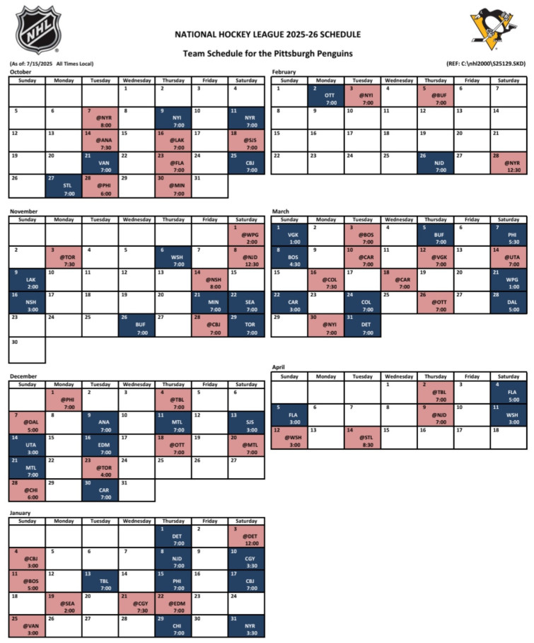 The NHL announced the full schedule for the 2025-26 regular season. Here’s what the Penguins are working with.