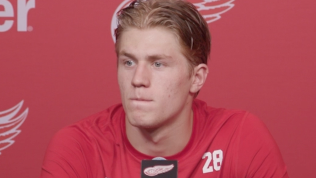Ted Kulfan talks to Brandsegg-Nygard on chances of making the Red Wings.