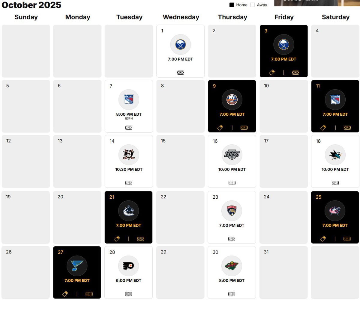 Competition-wise, it might seem like not that challenging on the surface. Yes, there is that trip to Florida looming, but only four of the month’s 11 unique opponents made the post-season last year (FLA, MIN, STL, LAK). None besides the Panthers won a round. Then again, almost everyone on the schedule this month, save for San Jose, has aspirations to be involved in the playoffs next spring. Teams like Vancouver and Anaheim and the Islanders will be looking to get off to good starts to position themselves for the long road ahead.
